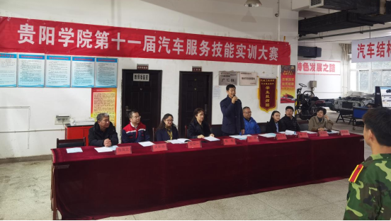 2021年12月10日中午,历时一个多月的训练,由教务处主办,永利3044noc承办的第十一届汽车服务技能实训大赛决赛在实验楼C栋汽车服务技能实训中心拉开序幕。决赛开始前,首先举行了第十一届汽车服务技能实训大赛决赛仪式,贵阳公司党委副书记焦艳、副董事长刘刚亲临指导,企业代表博世公司张元伟先生和贵州通源集团公司人力资源杨红总监到场参加,永利3044noc教务处孟俊一处长、蒋泽标副处长出席仪式,永利3044noc全体教师、汽车服务工程专业所有员工均参加决赛仪式。
